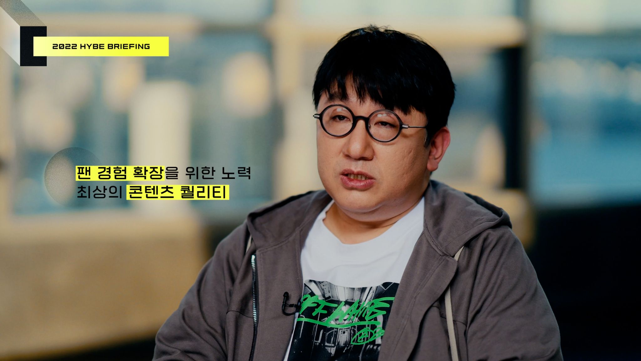 회사설명회 영상은 숨가쁘게 진행되는 혁신과 사업 확장 과정에서 구심점이자 원동력으로 작용하는 요인들이 무엇인지에 대한 질문을 던지는 것으로 시작했다. 하이브를 움직이는 구성원들은 이에 대한 해답을 찾기 위해 하이브의 핵심 가치와 팬 경험의 확장을 위한 새로운 시도들에 대한 이야기를 진솔하게 나눴다.
