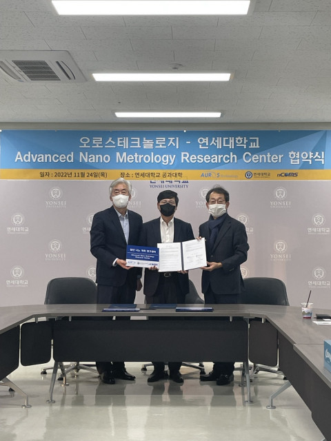 11월 24일 연세대 공과대학에서 진행한 협약식에는 이준우 오로스테크놀로지 대표와 명재민 연세대 공과대학 학장, 해당 연구의 중심 역할을 할 강신일 연세대 기계공학과 교수 등이 참석했다.