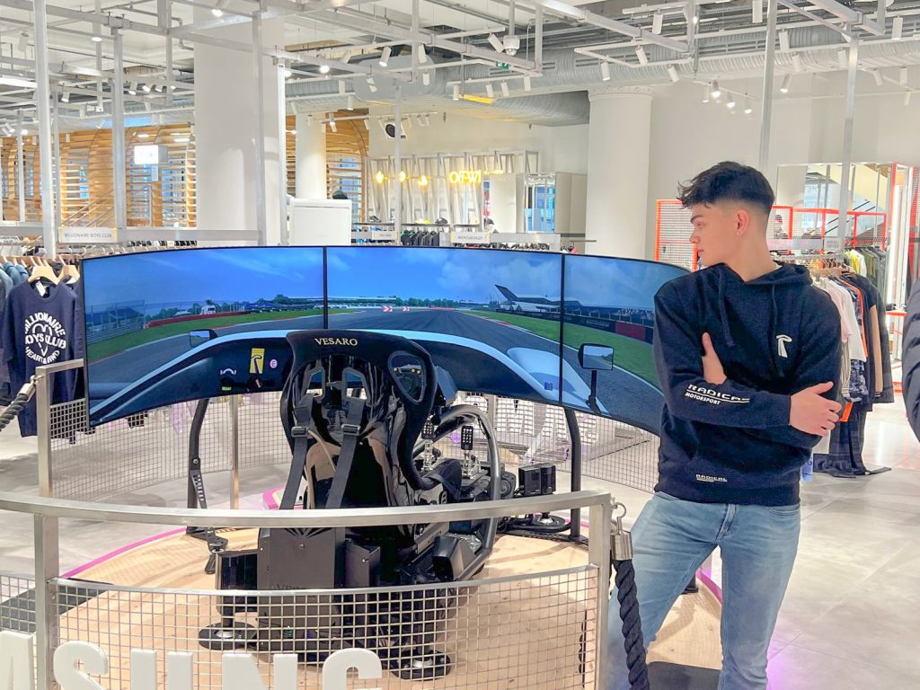 체험존을 찾은 고객은 중앙에 위치한 삼성 오디세이 아크 3대를 연결해 설치한 시뮬레이터에서 레이싱 게임을 즐길 수 있다. 세계 최초 55형 1000R 곡률의 커브드 게이밍 스크린이 주변 시야를 가득 채우고, 마치 실제 레이싱카에 탑승해 도로를 질주하는 듯한 완벽한 몰입감을 느낄 수 있다.