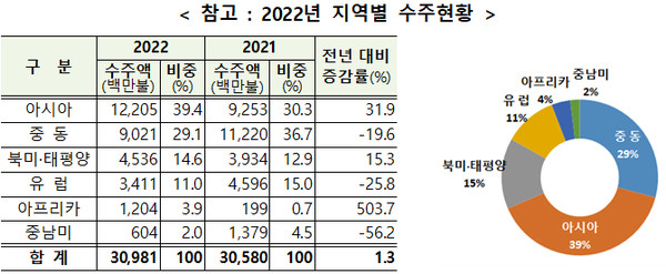 중동은 작년 비중(37%)보다는 줄었지만 하반기 들어 산업설비를 중심으로 수주가 증가하는 모습을 보였다.
