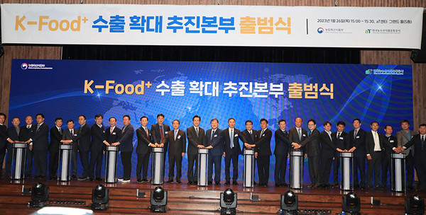 농림축산식품부는 지난 26일 서울 양재동 aT 센터에서 ‘케이-푸드(K-Food)+ 수출 확대 추진본부(이하 추진본부)’ 출범식을 개최했다고 밝혔다.