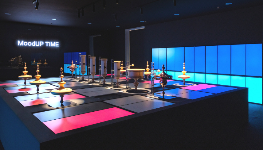 이번 전시의 주제는 ‘무드업 타임(MoodUP TIME)’이다. 고객은 무드업 냉장고의 빛과 음악이 조화롭게 어우러지는 모습을 경험할 수 있다. 부스 중앙의 메인 전시관에서는 18대의 무드업 냉장고가 무드업을 위해 편곡된 음악에 따라 색상과 분위기를 바꾼다. 함께 전시된 키네틱 아트(kinetic art; 작품이 움직이거나 움직이는 부분을 넣은 예술작품)와 어우러져 강렬한 인상을 연출한다.
