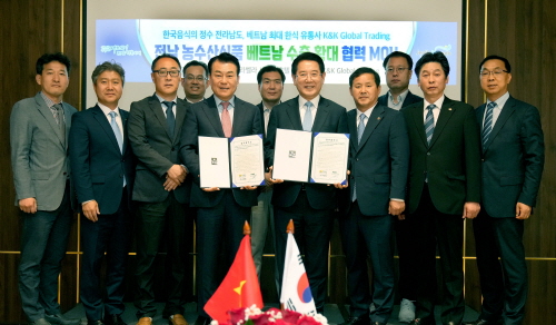 베트남을 방문 중인 김영록 전라남도지사는 23일(현지 시각) 호치민 라벨라 사이공 호텔에서 한국식품 유통 전문기업으로 148개 매장을 갖춘 K&K 글로벌 트레이딩과 전남 농수산식품 수출 확대 업무협약을 했다.