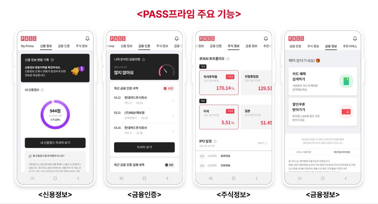 지난 3월 출시한 ‘PASS 프라임’은 휴대전화 본인 인증 시 현금처럼 사용 가능한 PASS머니를 적립해주며, PASS앱에서 제공하는 주요 부가서비스인 신용정보, 주식정보, 금융정보 등의 핵심 기능을 이용할 수 있는 구독 서비스다.