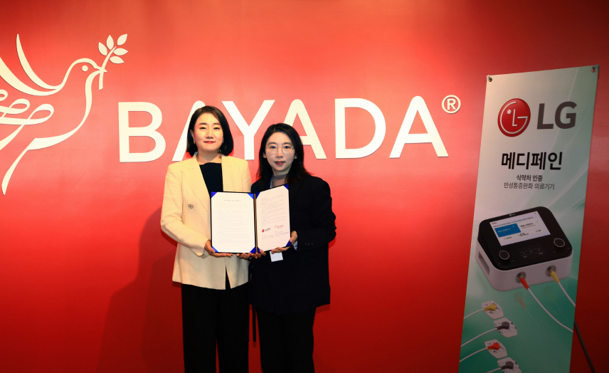 LG전자는 이번 협약 체결을 통해 바야다와 LG 메디페인을 활용한 의료인 방문간호 및 방문요양 서비스 등 다양한 프로그램에서 공동 사업개발과 제품 판매를 위한 협력을 강화한다.