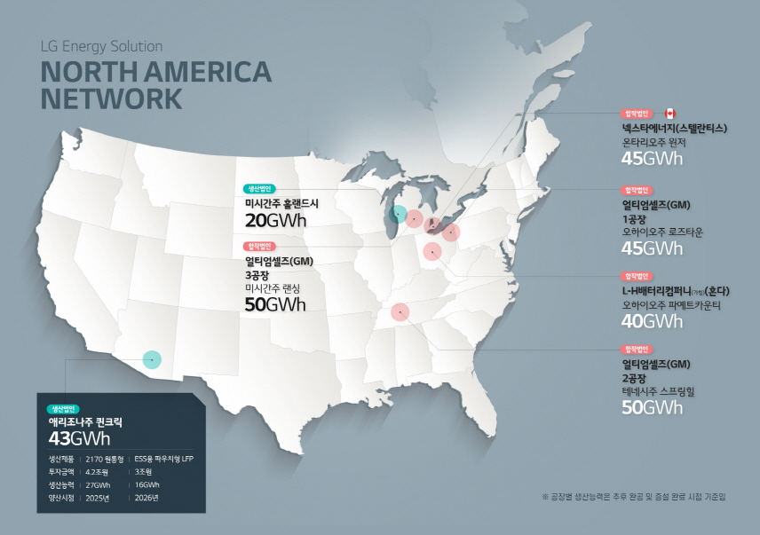 이번 신규공장으로 LG에너지솔루션은 북미지역에서 총 7개의 생산기지를 확보하게 된다. 현재 미시간 독자 공장 및 오하이오 GM 합작 1공장을 운영 중에 있으며 테네시 GM 2공장 및 미시간 GM 3공장, 오하이오 혼다 및 캐나다 온타리오 스텔란티스 합작 배터리 생산공장을 건설 중에 있다.