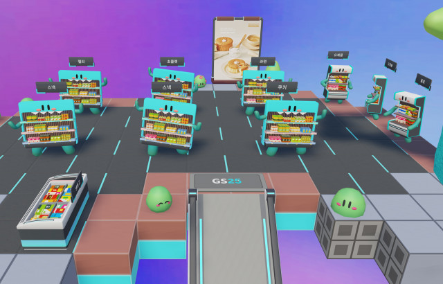 GS25신한메타버스점은 아바타가 GS25 진열대의 상품에 접촉하면 50여 종의 GS25기프티콘(바코드 모바일상품권)을 구매할 수 있도록 연동된 가상 GS25 공간과 퀵커머스 ‘우리동네딜리버리(이하 우딜)’가 연동된 홍보관으로 구성됐다.