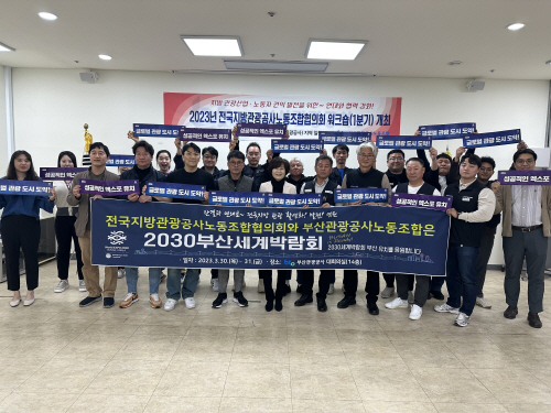 전국지방관광공사노동조합협의회(경기관광공사노동조합, 경상북도문화관광공사노동조합, 대전관광공사노동조합, 부산관광공사노동조합, 인천관광공사노동조합, 제주관광공사노동조합, 이하 협의회)와 부산관광공사(이하 공사)는 30일 부산에서 열린 '2023년 전국지방관광공사노동조합협의회 워크숍'에서 2030 부산월드엑스포 유치를 지지하고 함께 협력하기로 했다.