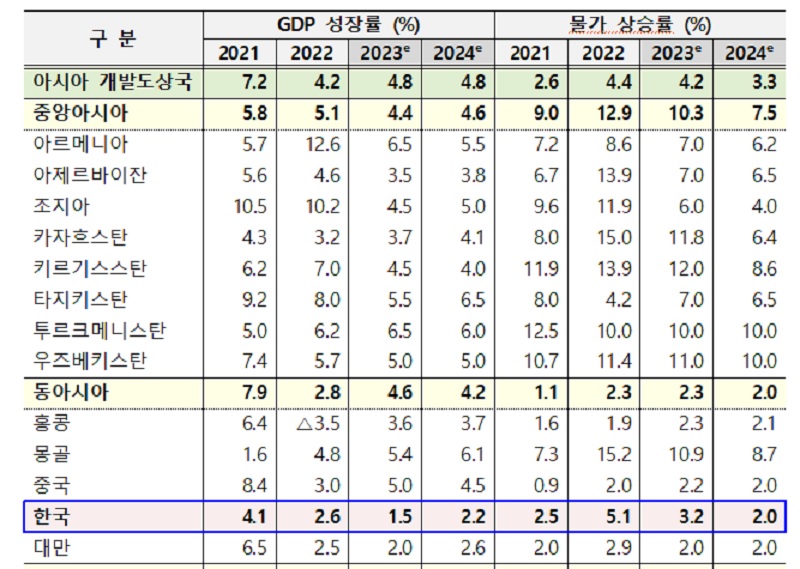 기획재정부는 ADB가 이같은 내용이 담긴 ‘2023년 아시아 경제전망’을 발표했다고 4일 밝혔다.