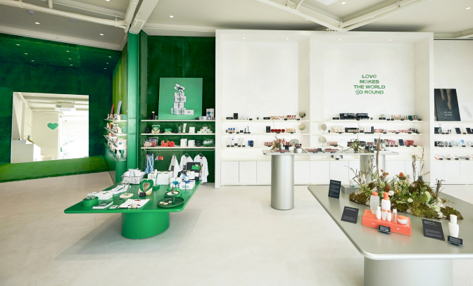 1층 스토어에서는 아모레부산에서 선별한 브랜드와 상품을 마음껏 경험하고, 이곳에서만 만날 수 있는 라이프스타일 굿즈와 전용 제품, 샘플을 고르는 재미와 구매 혜택까지 즐길 수 있다. 계절에 따라 매월 달라지는 선물 셀렉션을 확인할 수 있고, 전용 선물 패키지 포장을 제공한다. 자연에 대한 사랑을 담은 초록색과 이태리어로 사랑을 뜻하는 Amore를 바탕으로 제작한 그린 하트 아이덴티티를 곳곳에서 발견하는 즐거움을 찾아볼 수 있다.