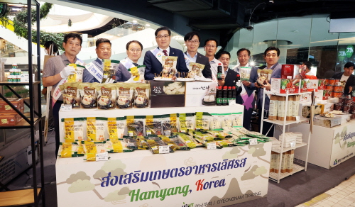 태국에 도착한 개척단은 11일부터 엠퀴티어 백화점에서 열린 판촉행사에 참여해 함양 농식품 가공품을 소개해 좋은 반응을 얻었다.